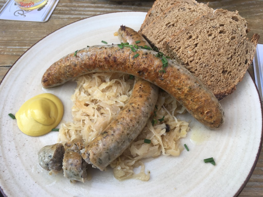In Germany, you can not refer to this sausage as a brat. It is a wurst. The full name is a Bratwurst and for some reason Americans shortened it to brat, but the word brat refers to the way that the wurst is cooked. Brat means that is was fried. Any kind of food in Germany can be brat, whether it is a wurst, potatoes, or vegetables. The difference between a wurst in Germany and here is that they don’t eat it on a bun or with Ketchup. It is served with a lot of sauerkraut, mustard, and usually with a side of bread like most other German dishes. I don’t know which way I like better, the German way or the American way. They are both amazing. I highly recommend trying it the German way if you haven’t.