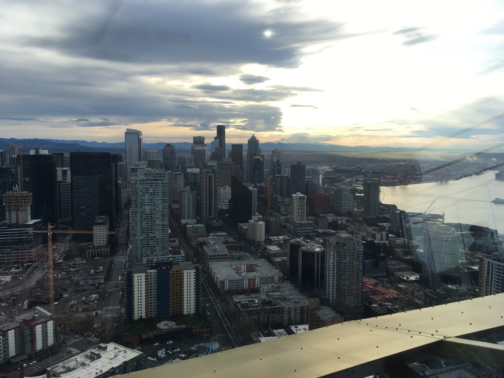 Lucky for us our wait for the Space Needle wasn’t very long. It wasn’t very busy, because we were there in January. Honestly, I think January was the best time of year to visit. The weather was nice, around 50 degrees, which was warm for us because we were coming from Minnesota. Also, everything was green and it was actually sunny when we were there, which is weird since Seattle is usually cloudy and rainy. The best part was that it wasn’t the peak time for tourists, so we never had to worry about crowds or lines. Especially at the Space Needle. I would have waited in line though if I had to, because the Space Needle was really cool.