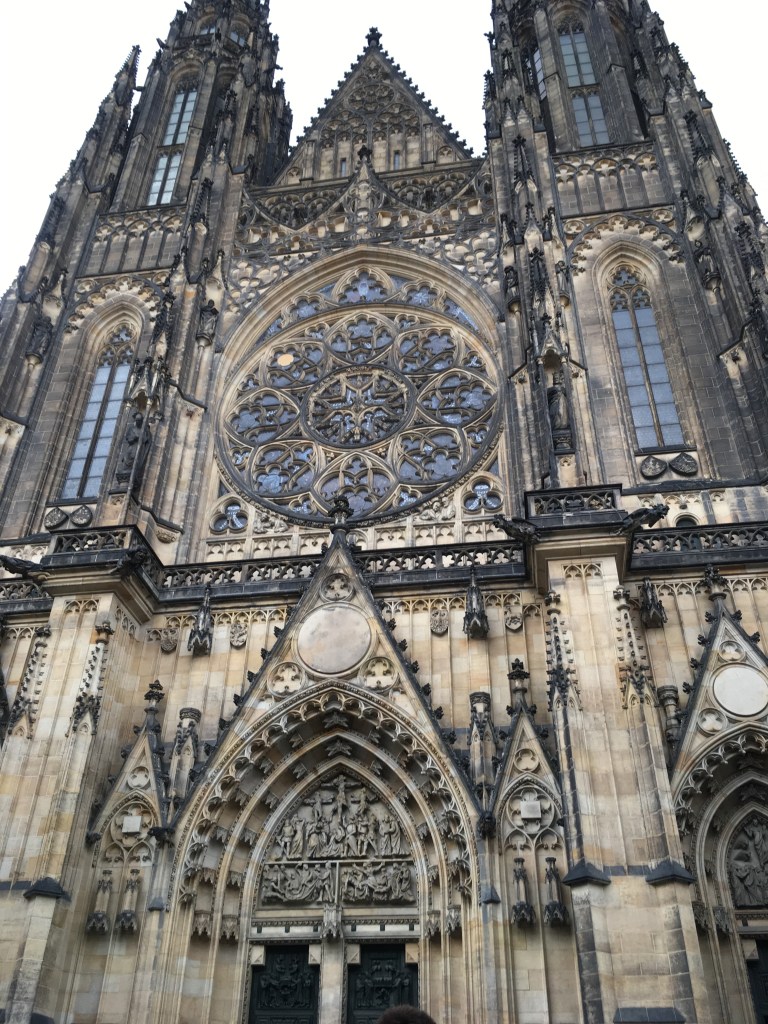 We took our bus over to Prague castle. It was a bit of a walk to the actual building and we had to wait in a few long lines, but it was worth it. As we entered into the square we saw in front of us the presidential building. If the flag is out, which it was, it means that the Czech president is there. Then to our left there was a path to the Cathedral. We took a tour of the Cathedral and the palace, but I am going to be honest. I didn’t learn much. Our tour guide had a very strong bias against Catholics, which is understandable considering the Czech Republic’s history with the Holy Roman Empire. I tried my best to ignore her bias, but being a Catholic, it was hard. After awhile I just could not listen to her anymore. I settled for reading the signs and imagining the events that happened here.