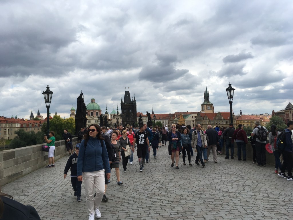 After some walking around Prague we finally made it to the thing I was looking forward most to seeing the most: Charles Bridge! It is not all I had expected it to be though. I thought it was going to be magical. As we were walking up the steps, I heard a street musician playing Danny Boy. I thought I was entering a fairytale, but instead I entered onto a bridge covered in people. I don’t even have a nice picture of the bridge. Just a picture with a bunch of people in it. It didn’t help that there was a lot of vendors too. You wouldn’t be able to tell that it is the Charles Bridge. I did get to see many statues of different saints which was cool. I even touched the feet of one to make my wishes come true. What can I say. Feet are less gross than penises.