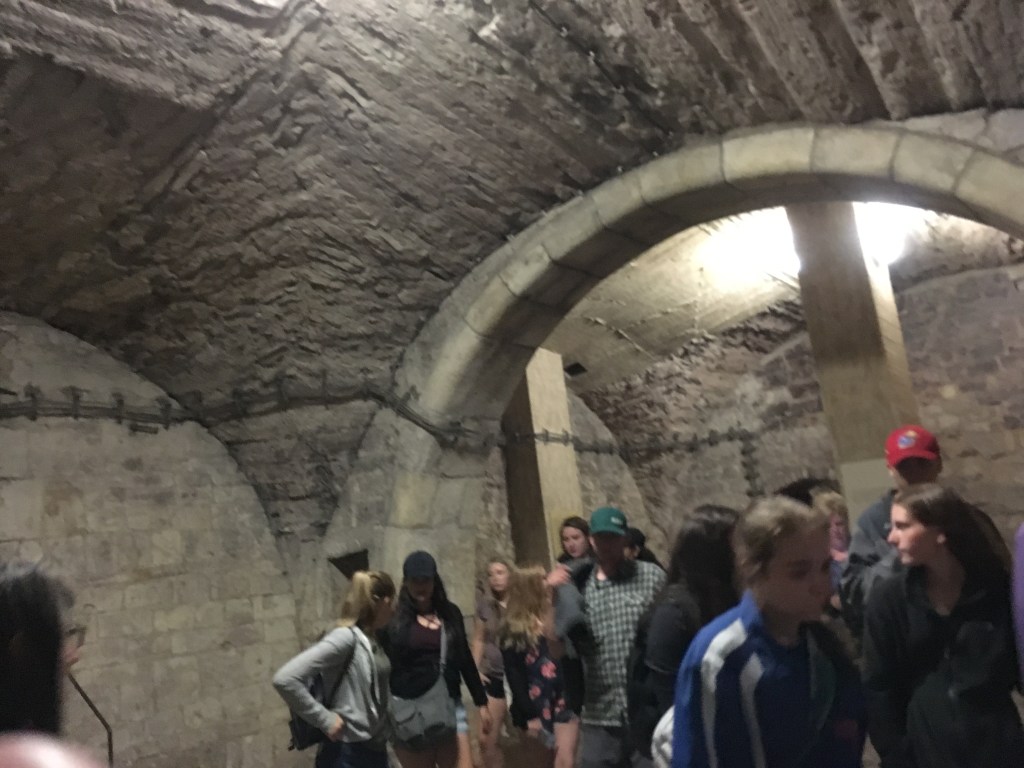 A long time ago, in the 13th century, another Prague existed. This Prague was buried. Because of its location on the Vltava river, the old city experienced lots of flooding. Eventually the people buried their city and built a new one on top. This is the Prague we see today, but the old one has been preserved and holds just as much history. In the late Middle Ages, it was used as a dungeon. Many people were tortured or executed here. This included being burned alive in the old wells that existed in this old city. When underground first started to be explored again after its dark time, 200 skeletons were found behind one of the doors. The underground had a dark, but intriguing feeling. I’m not the kind of person to be into ghosts, but I kind of enjoyed being in the haunted underground.