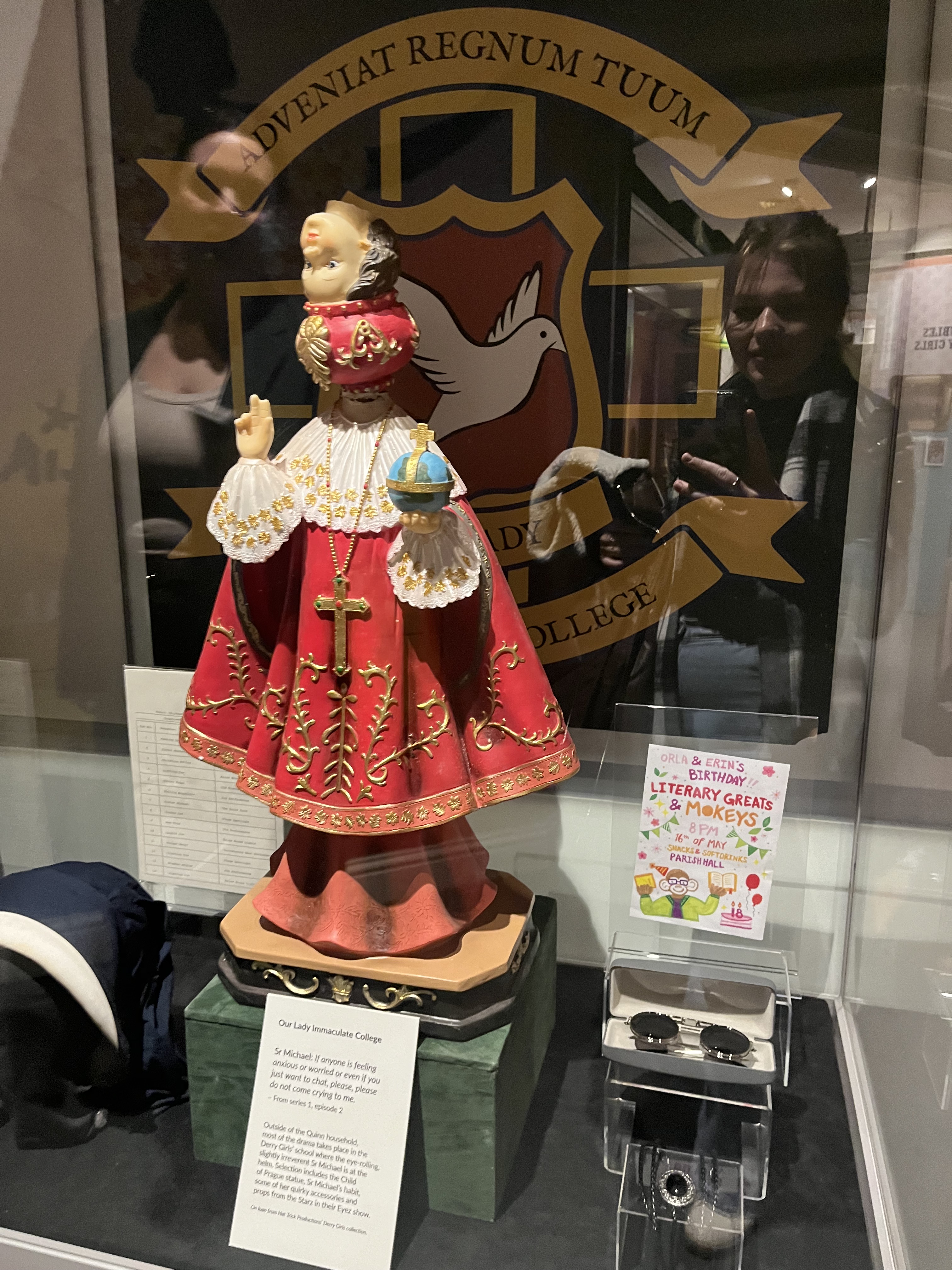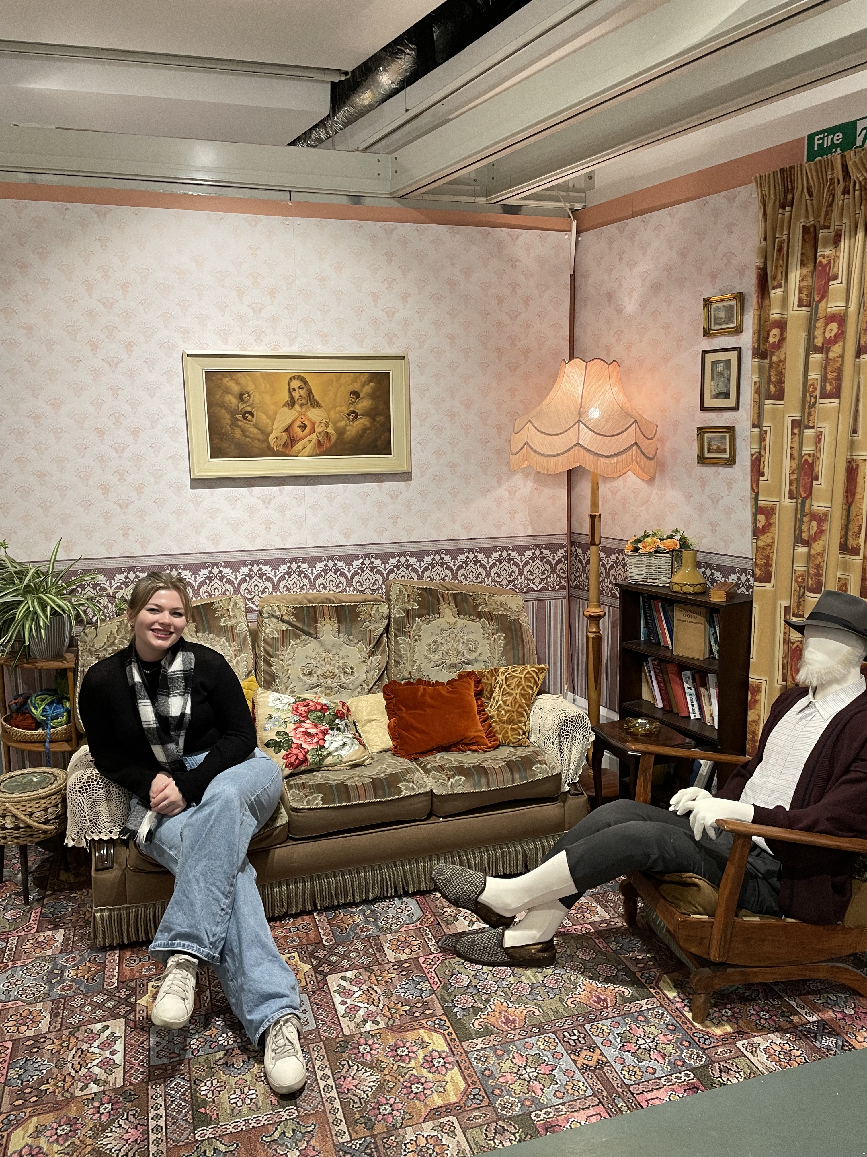 It is not expensive to visit the Tower Museum. It’s 6 pounds and 4 if you still have a valid student ID. The Derry Girls experience is the first exhibit when you enter. It starts with an introduction to the characters and then you’ll find yourself in the Quinn’s family living room. There are also a few props on display like Erin’s Diary and the statue from the first episode.