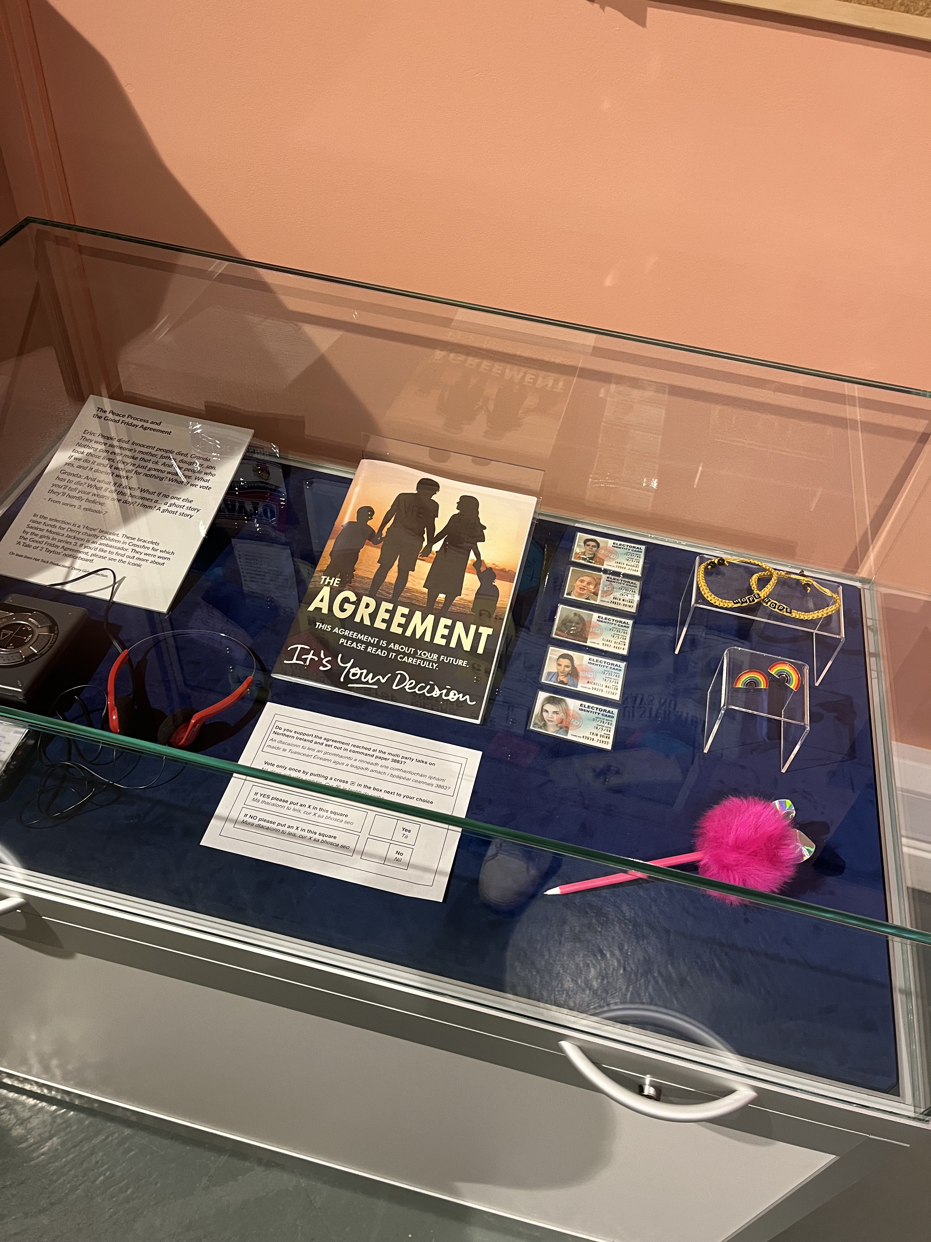 There are a lot of ways to engage in the experience by looking at the props and set but also through an audio tour, trivia, and virtual reality stops that I never really was able to figure out, but it was still great without it. After you go through the Derry Girls experience you can take a little tunnel that transports you back in time to the history exhibit.