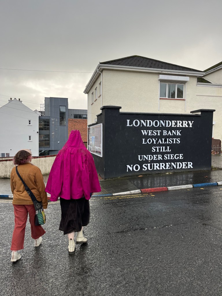 I am just going to preface this by saying it was not an easy journey to Derry. It is about a 6 to 7 hour bus ride from Galway, as the bus drives through Mayo, Sligo, and Donegal with many stops on the way before getting to Derry. And let’s just say you are not guaranteed to get a bus with a bathroom so be prepared to run across the street to the pub during a stop. I really wish that it hadn’t been dark during my bus ride because this part of Ireland is supposed to be just beautiful. My friends had class so we had to take the last bus at 4 pm, which mean not much daylight for looking out the window.