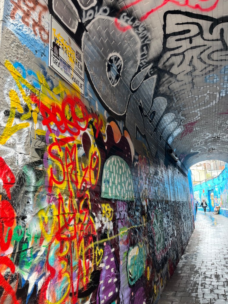 Ghent’s little graffiti street is an interesting change in pace from the rest of the city. It is short and a bit hidden as it is just a walkway, but this street works as the city’s public gallery for street artists. The purpose of the street was to give graffiti artists a place to paint which would ultimately prevent graffiti in other parts of the city. Every so often the walls are painted blank again and new work is done so it is constantly changing. It is definitely worth checking it out and seeing the other side of Ghent.