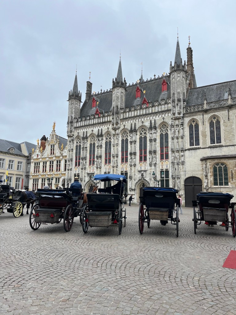 This gothic building has been the ruling place of Bruges for nearly 600s years. It sits in Burg Square which is where you will also see many horse drawn carriages lined up and maybe even some buskers. Its a smaller square than market square but its quaint and hidden qualities given it a unique charm. You can go inside of the town hall for 8 euros and experience its history, art, and archeological exhibits. This is a great stop in Bruges even if it is just to see the outside and take a picture.