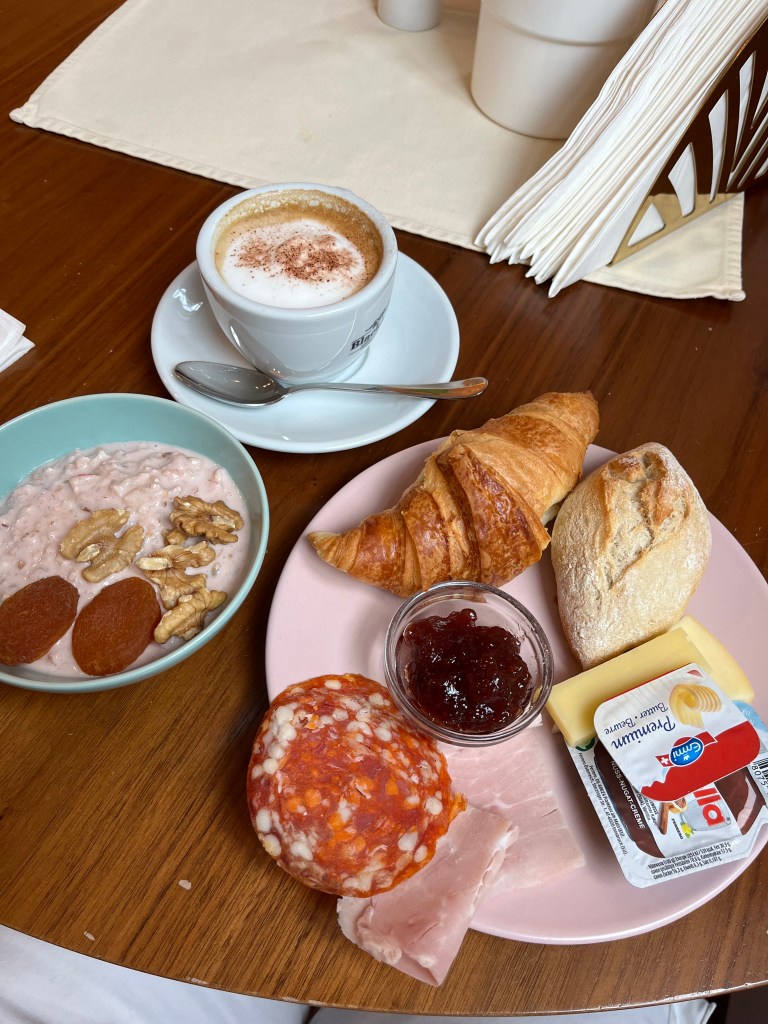 The next day was so much warmer and sunnier! Its was the perfect spring day. I started my full day in Zurich not too early. I got breakfast down in the cafe of the hotel. I could have probably found a cheaper breakfast elsewhere but I was too tempted by the meat, cheese, and bread buffet. I had unlimited access to all of my favorite European breakfast foods. And you can’t forget the muesli or the Cappuccino. I really miss a plain good European Cappuccino sometimes. It also wouldn’t really be Switzerland if my Cappuccino wasn’t served with a piece of Lindt chocolate on the side.