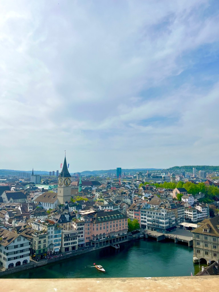 I had time to spare and you know I love climbing towers (they always give you the best views of the city), so I decided to pay the few Swiss Francs to go up into the tower. It was getting late so luckily I had just enough time to do this before they closed the towers. It really was a gorgeous sight. I was able to see to the right the river with the buildings of the old city next to it along with all the homes in the distance. To the left I could see the extent of Lake Zurich and the mountains in the background. So while the church itself wasn’t very extravagant, the view of the city made it worth it.