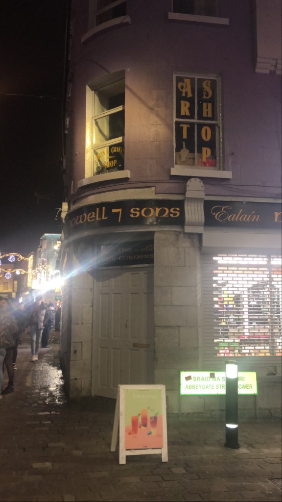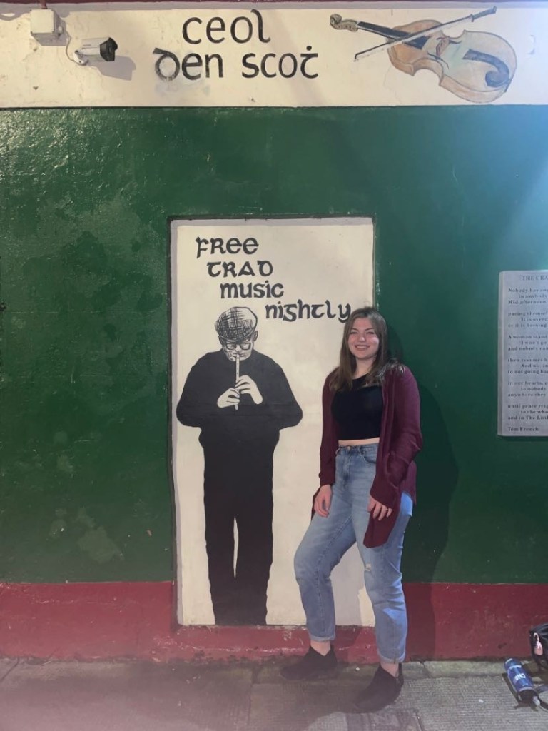 The other thing I really wanted to do was get involved in the societies, which are the clubs in Ireland. I brought my flute from back home and I had hoped to get involved in the Music Soc since I played flute in the band of my college back home. The Music Soc didn’t take place that semester because it was the Fall of 2021 and there were still remnants of Covid. Instead I joined the Trad Soc. Trad music is what they call traditional Irish music in Ireland. I figured I could learn some Irish music on my flute. There was a flute in the Irish music band my mom played with at the Irish parties.