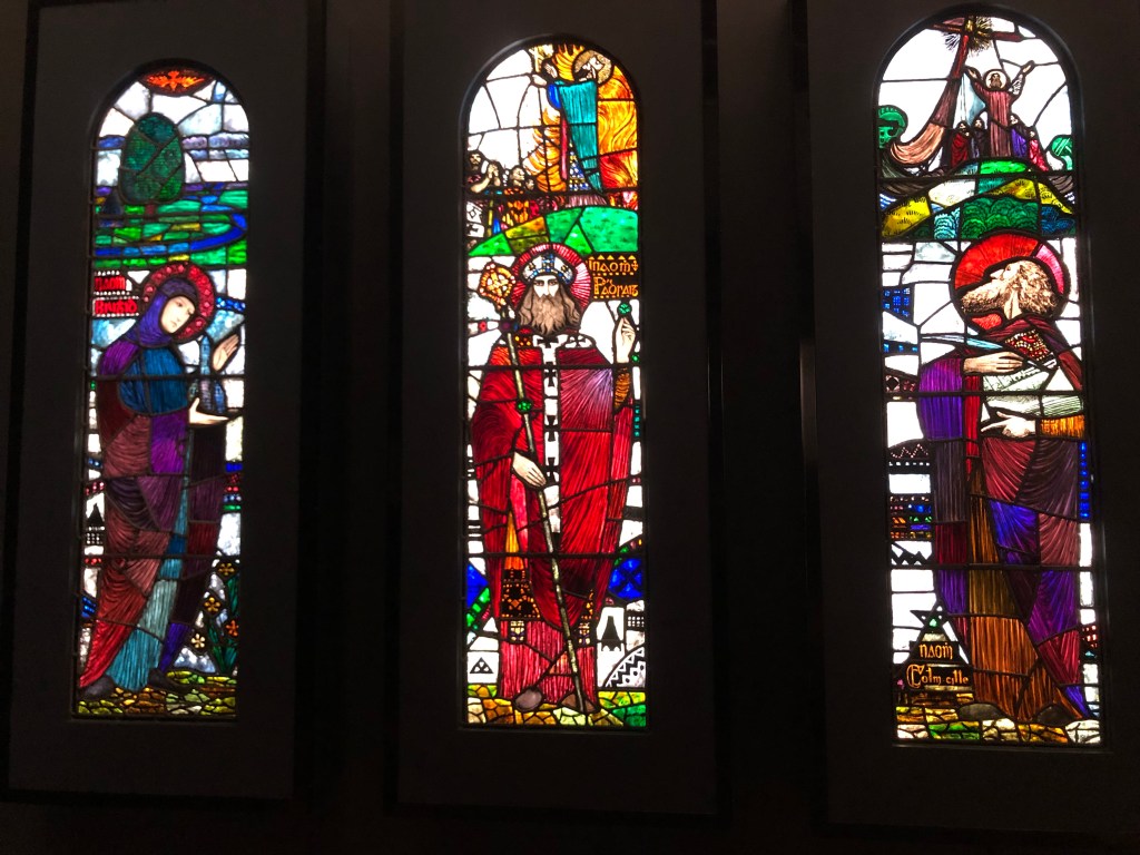 Now I can’t remember exactly why we didn’t go inside St. Patrick’s Cathedral. I think we took a peek but ultimately decided not to go in either because of the admission fee or there was some sort of service going on. As a Catholic I don’t usually like to pay to visit a church, I will pay the couple euros to light a candle, but I feel it is wrong to make people pay to visit a church as not everyone can afford to do this and our church preaches about helping those less fortunate. All that said there are churches that don’t have admission fees and a lot of time the biggest cathedrals attract more tourists than those that are there for faith reasons. The best way to get around this as a Catholic is to go to mass. We just didn’t have room for that in our plan for the day so we walked around the outside and sat in the garden.