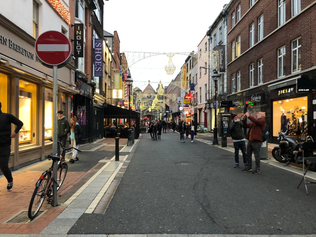 After lunch we walked through the big streets of Dublin, stopping in stores when needed and watching street performers, specifically one perform with fire. Grafton Street was the major pedestrian and shop street in Dublin. It was decorated for Christmas as well. We tried to visit St. Stephens Green, the Central Park of Dublin, but is was closed so we only got to see the gated entrance.