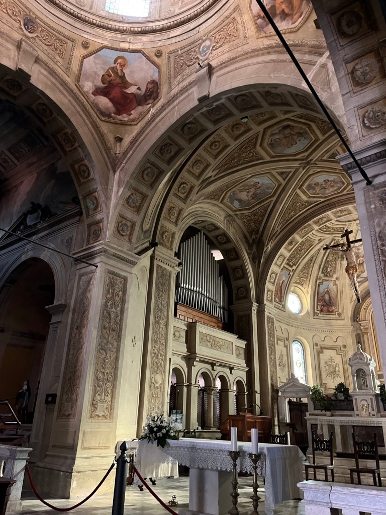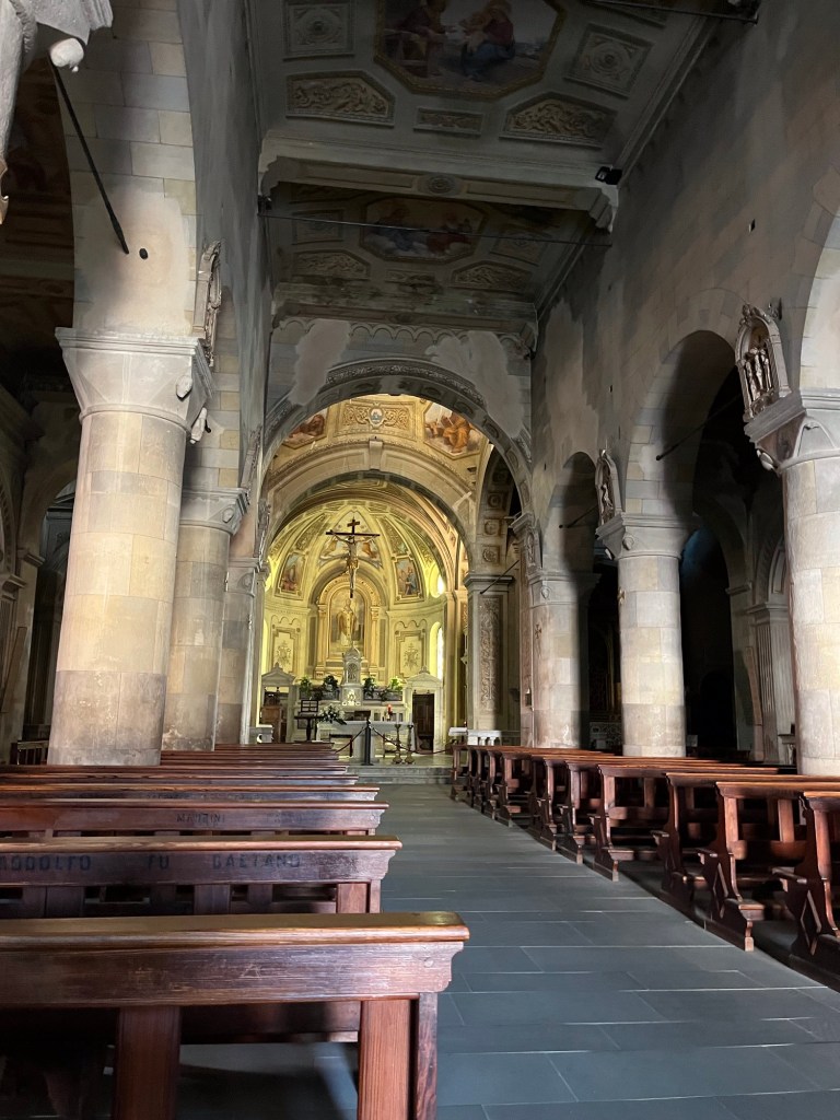 I decided to walk to the main square, Piazza Corsini. There were people sitting outside restaurants chatting and I took a seat on a bench. After taking in the view of the stores, houses, and towers, I decided to walk to the nearby church, Pieve di San Silvestro Papa. There was nobody here at this small church, but the doors were opened so I peeked inside and walked around the room looking at the art that decorated the walls.