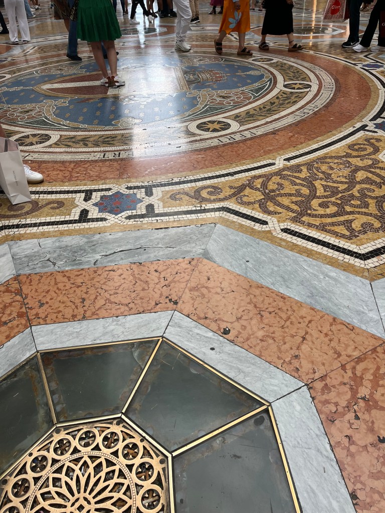 Once we left we got our pictures and it began to sprinkle a little bit outside. I didn’t think much of it. It wouldn’t really rain that bad, plus I had things to do, so we walked through the Galleria Vittorio Emanuele II. It obviously was too expensive of stores for us as it was all designer, but I still wanted to walk through. There was so much to look at up above and on the floor. I thought there was a spot where you were supposed to spin for good luck, but I couldn’t find it.