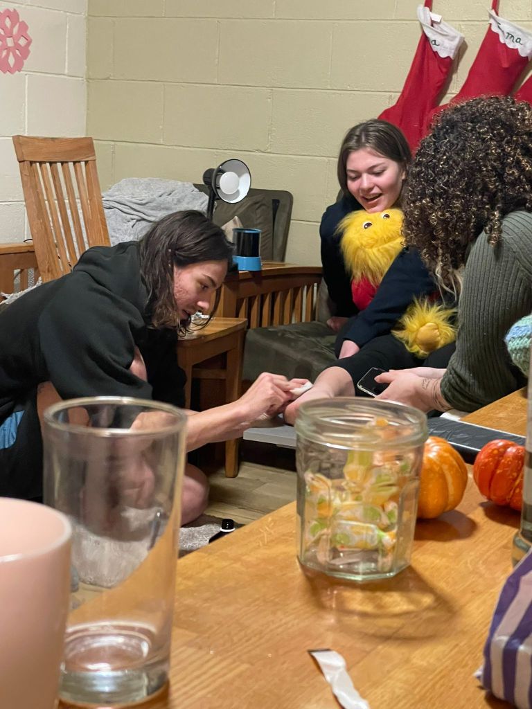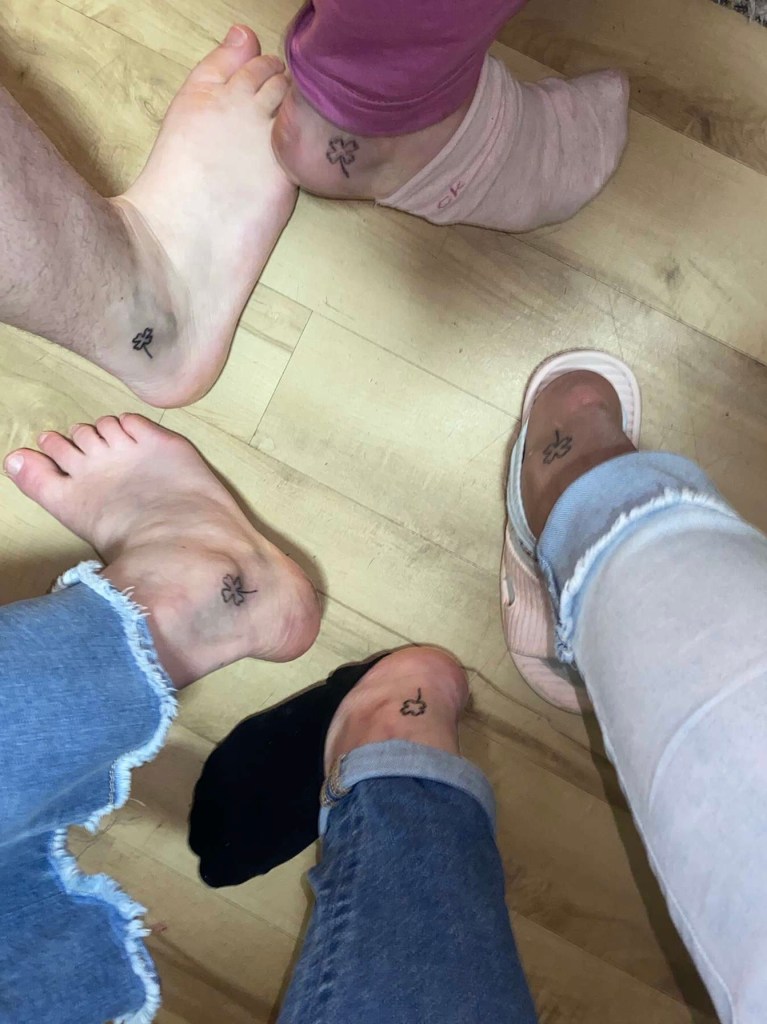 One of my friends did it. Yep I didn’t even go to a tattoo parlor. My upstairs neighbor did stick and poke tattoos and he was actually really good at it so I completely trusted him. This worried my mom a little bit when I told her about it. I didn’t want to just come home with a tattoo so one day I texted her that I was getting a tattoo. She was very adamant on making sure that he used a different needle on each of us. Now this is the other part. I was really nervous about what my parents would think about me getting a tattoo, so I convinced all of my roommates to get the same one so that I could say it was a group thing. I never even told my dad about it because he was so against tattoos. My mom was the one to tell him.