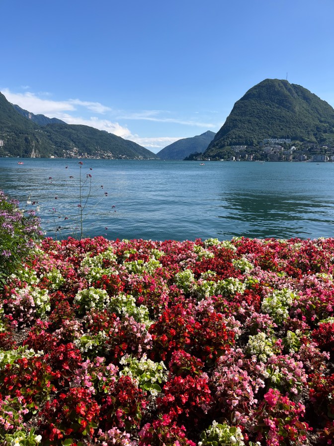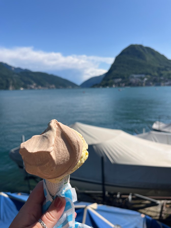 When we arrived in Lugano, we only had another hour. Our guide gave us a few choices on how to spend that hour: you could go into city center, rent a paddle boat to go on the water, or walk along the water in the park. I went with the third option. I felt like in the last couple stops I did a lot of town exploring and not enough water appreciation. I would have loved to go on the boat, but I think that would have been really hard alone, so I got a gelato and walked through the park. I am glad I went with this option because I got to see the locals enjoying life. I can’t explain exactly what it was, but Lugano felt like the happiest place on earth. I could have stayed here forever! It feels like one of those places where it could just be summer forever. The views of the lake and mountains was unreal. It is unlike anywhere I had ever been before. It was so unfamiliar, yet like I knew exactly what this place was.