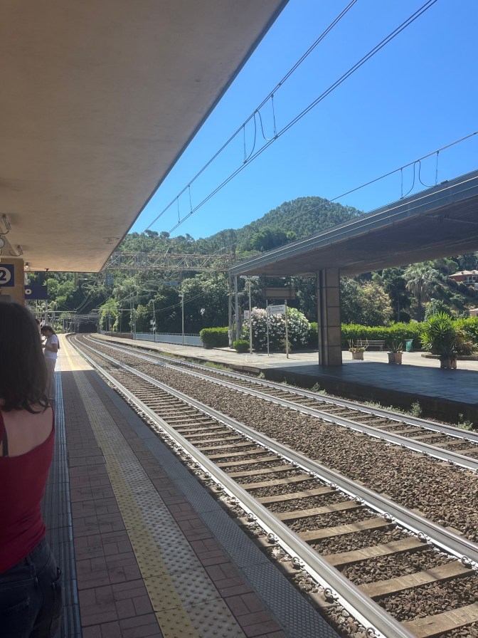 Now there is a certain point in any trip where things start to get to you, but you have to learn to let them go. Our hiking day was off to a rough start. We talked about when wanted to get started hiking the night before. I suggested 8 am, but this was Sam’s day and she wanted to do 7 am, so that is what we did. The thing about me is that I don’t like waking up early, but I will if I have to, especially when traveling. Anyway I was ready to go at 7 am. I just had to finished purchasing my Cinque Terre pass before getting on the train. Well, we did not the make the train. The next one wouldn’t be for about another hour.