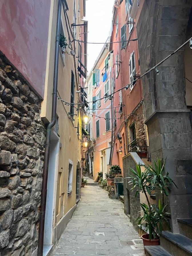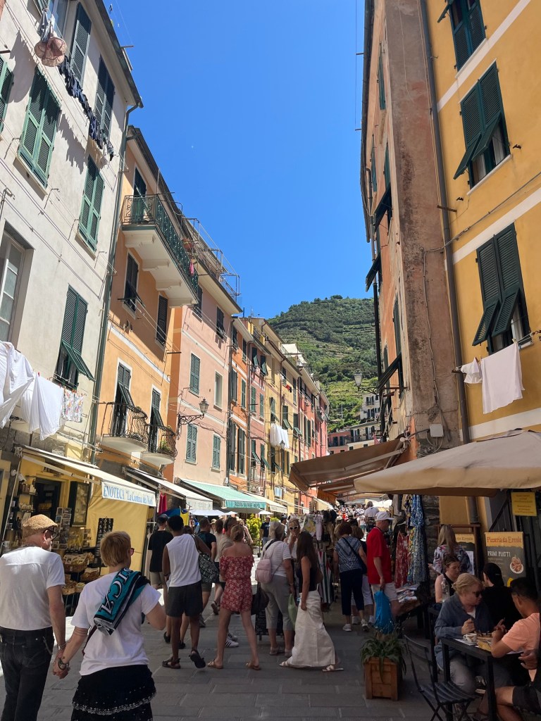 I planned two nights in Vernazza, one of the more popular villages that still has its original charm and has not been turned into a resort. My original plan for Cinque Terre was only one night, but I sacrificed some other places so that I could have another night, since it didn’t seem like nearly enough time to see all the village and do everything I wanted like going on the boat, hiking, and spending time on the beach. Cinque Terre also struggles with day trippers and I did not want to be a part of that problem. I wanted to really experience the culture and beauty of these villages, so I booked 2 nights at an Airbnb. Airbnb’s are becoming a bit controversial in the touristy places in Europe, because they are taking away housing from locals and not really contributing to the economy, but my stay doesn’t really apply to the former. It was just a room with a bathroom. Beyond a fridge and a small table with a kettle there was not kitchen. Therefore it wouldn’t really function as a home, so it isn’t taking it away from anyone. On the topic of the economy, yes the money I paid for the room was going to the host, but I’d like to think I was still positively impacting the economy. I was spending money at restaurants since I couldn’t cook in the Airbnb and spending time in the village. I felt confident that I wasn’t contributing to the problem that is day trippers. Now lets get into the fun part!