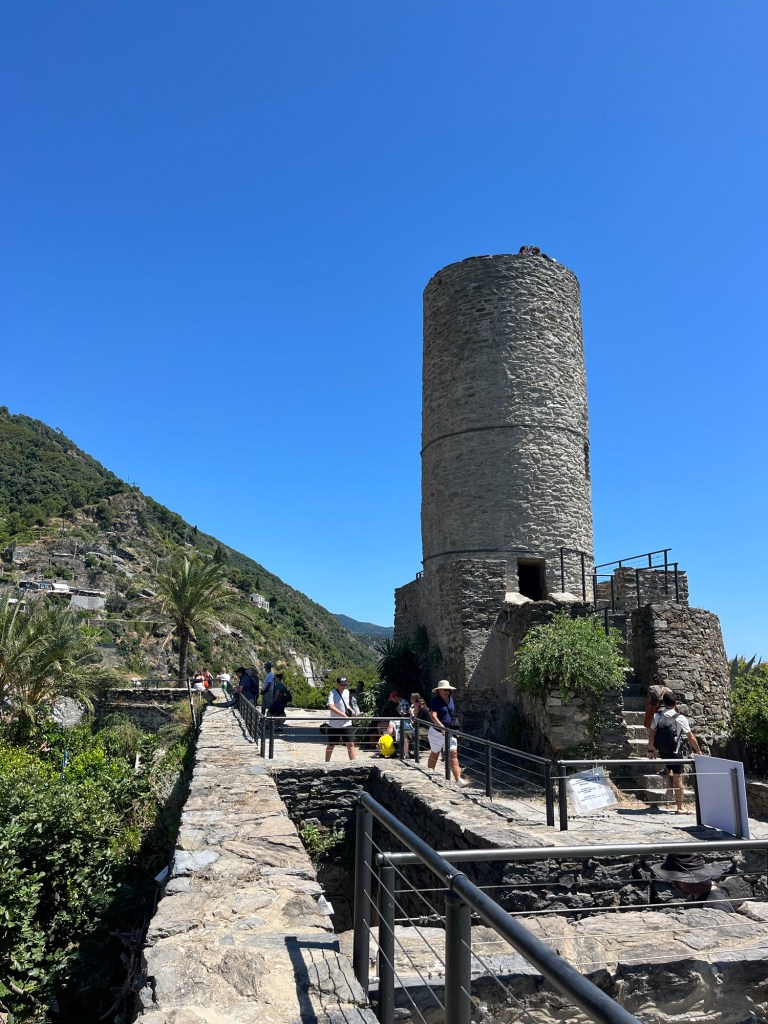 Afterwards I had a few too many drinks, since I also had some of Sam’s, but I was not going to be out for the day, so I drank lots of water and headed up to Castello Doria. I once again walked up the steps, but this time it was less busy and then paid the 2 euros to go to the top. It was an amazing view! The tower dates back to 1000, which is one of the things I love about Italy; everything is so old! There were quite a few people on the top of the tower when I climbed up and none of them really knew the rules to climb up and down one way stairs, which was frustrating, but I made it. The view really was something else. I have always been the kind of person that didn’t necessarily dislike the sea, but never really felt called to it like some people. I have always been a lake girl. I will say though that there is something about the Mediterranean sea that calls me. I felt it when au pairing in Mallorca. It feels friendlier than the ocean. I fell in love with it in this moment. It is so blue in the Italian Riviera. Then the green hills and colorful villages surrounding it give it so much life. I was hooked and feared I could never be happy anywhere other than on the coast of the Italian Riviera.