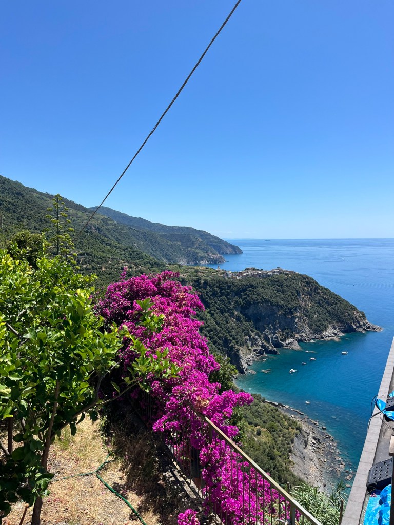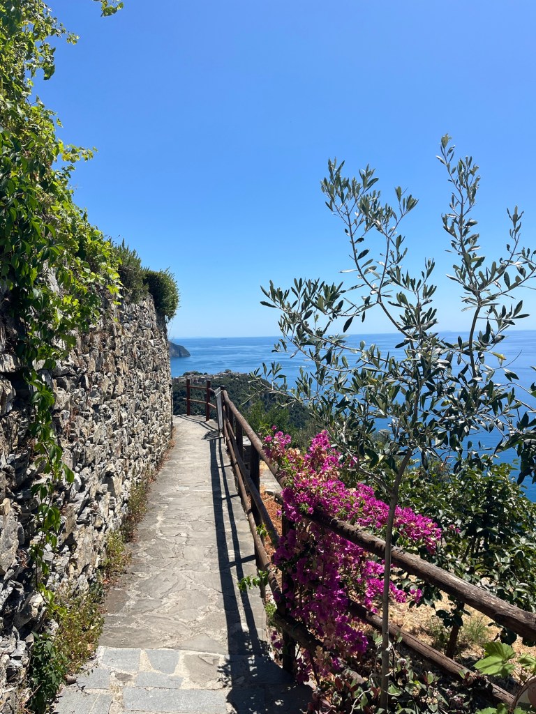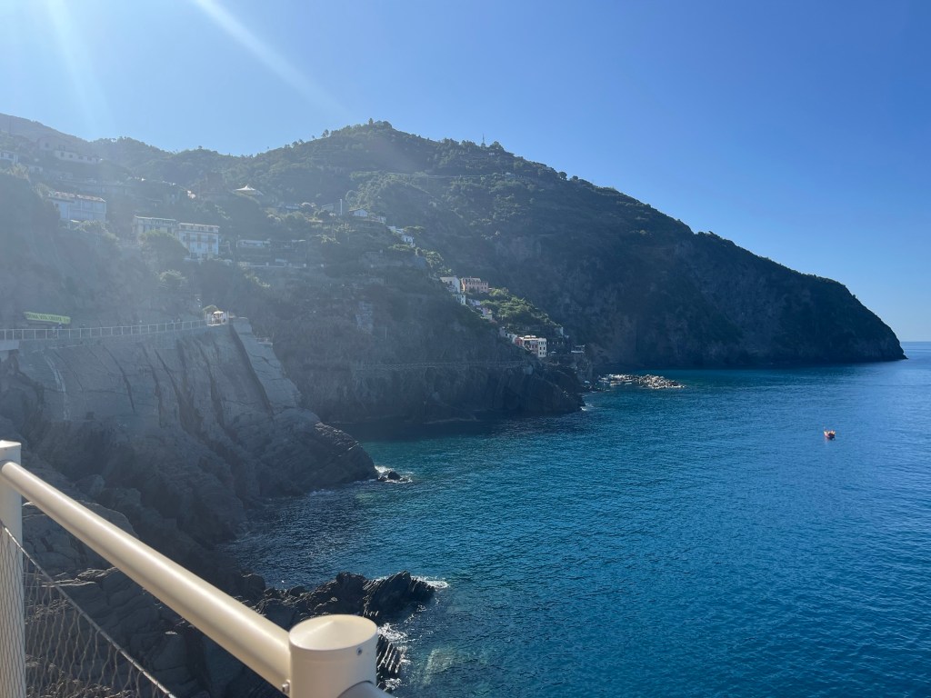 I was able to change my mindset and was ready to set out on the day of hiking. We decided to start at the end with Riomaggiore and make our way back to Vernazza. I am not sure if that made the most sense, but it was my idea and Sam rolled with it. The nice thing about doing it this way is that we were able to start with the easy trail as a warm up. We walked through Riomaggiore a little bit because I wanted to see the towns, but didn’t spend too much time there. It was also nearing 9 am which is the time slot we had for Via dell’Amore, the paved trail between Riomaggiore and Manarola. It only recently reopened after some rockslides that damaged the trail. It had some of the most pretty views of the water and the rolling hills. It was nice to start easy to get into things as it was only a kilometer, but I think I got a little too cocky afterwards.