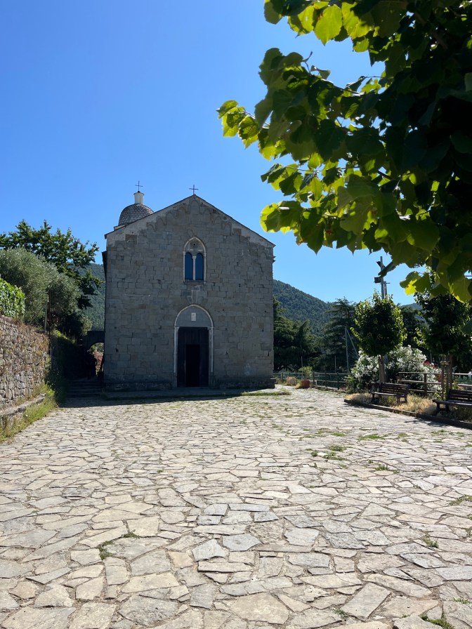 Now here is the thing about hiking in Cinque Terre. Corniglia is on a hill. To get to it ether way you have to go up in elevation. The recommendation is to start in Corniglia to go to Vernazza and Manarola, but that seemed like too much back and forth with having to catch the train, plus we wanted to do it in one go so we decided we were going to take on the hill to walk to Corniglia. Big mistake. There were so many stairs. They just never stopped. I was absolutely miserable. Between the actual work, the heat, and lack of shade, I struggled. Eventually we made it to the top and it was beautiful. There was another small little town on the top that was mostly residential, but there was a little shop selling drinks to visitors and a cute little church we saw on our way back to the trail.