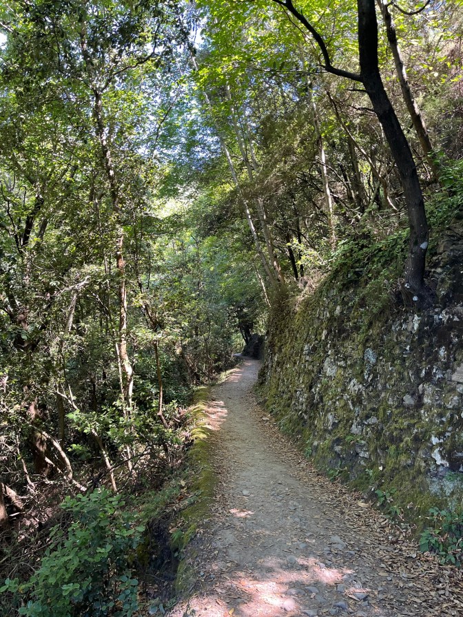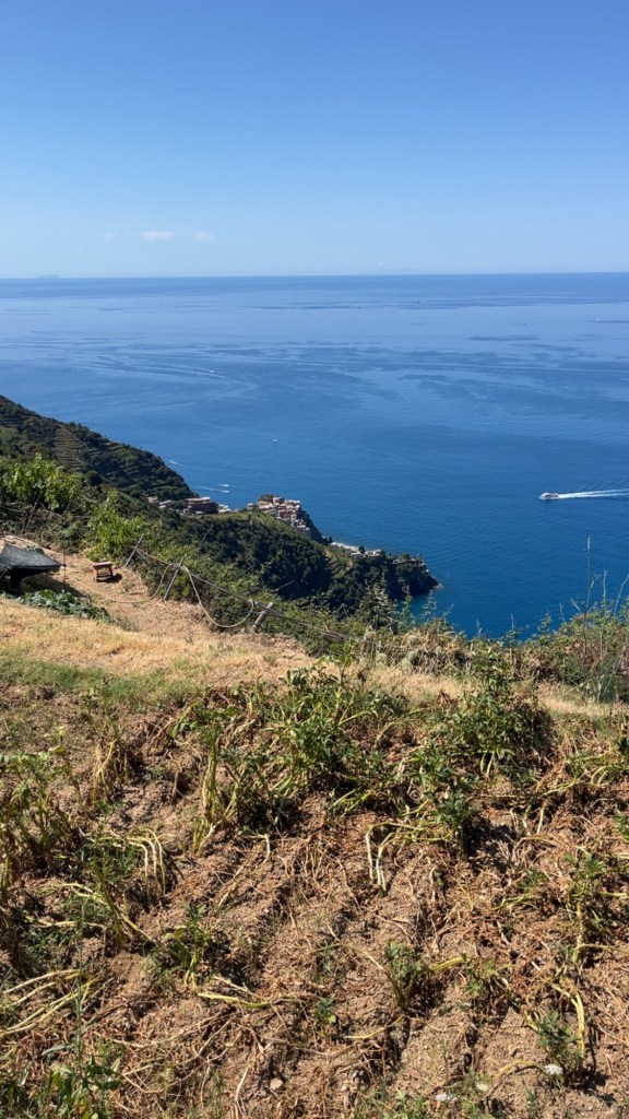 The trail took us through some interesting spots from there. We walked through vineyards and at times I thought we were actually walking in people’s backyards. It was here though that we had the best view of the entire hike. You could see how far we had climbed from Manarola plus the sea that was now dotted with boats. Eventually we made in into the more wooded part of the trail which felt more familiar. Here Sam was trying to convince me to do the whole trail to Monterosso with her. In this moment I felt invincible, so I was like “why not?” It would be really cool to do the whole thing, although it really isn’t the whole thing because it does reach to some other towns, but the just the entirety of Cinque Terre.