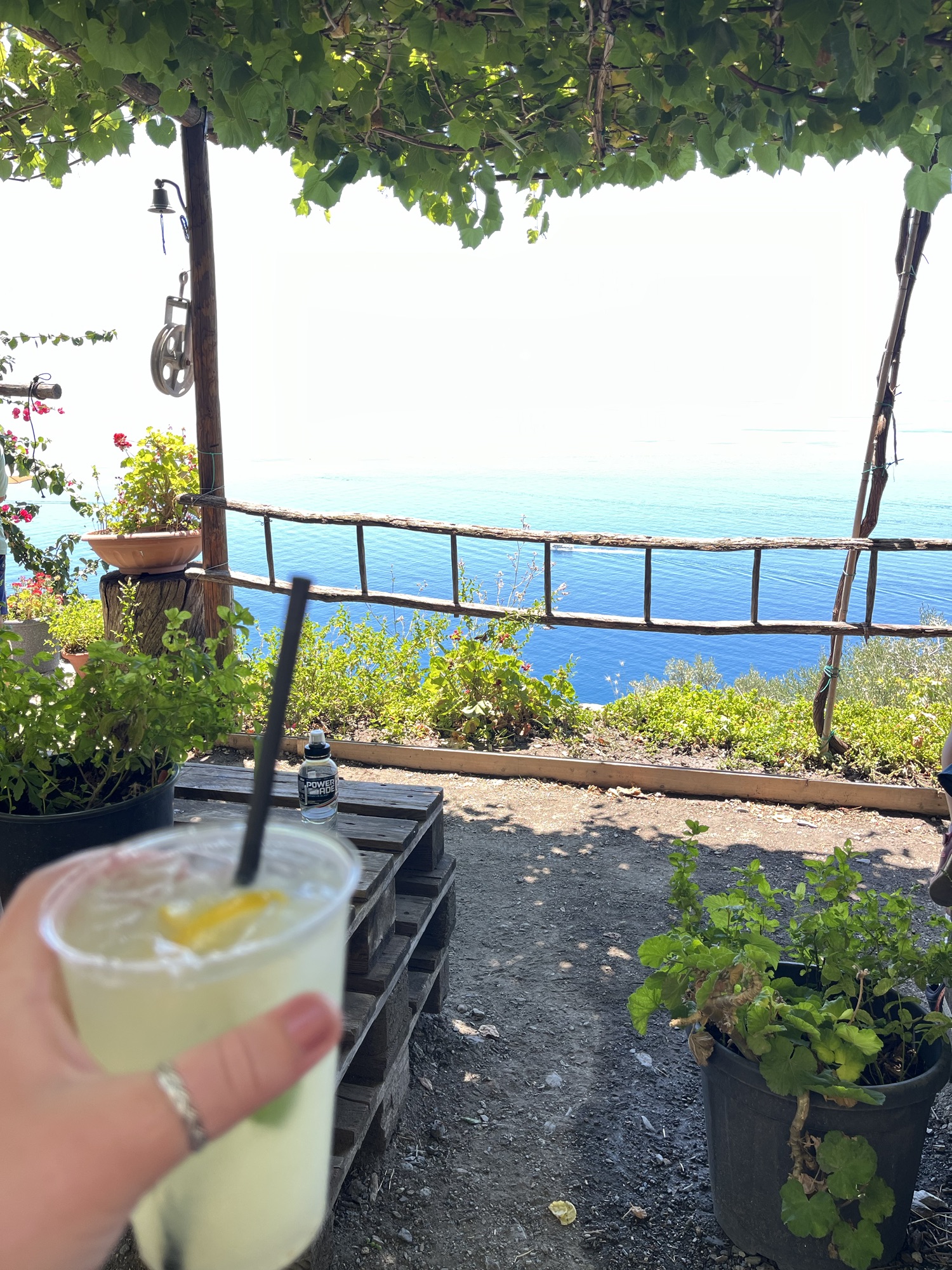 The next stop was a juice bar that we had been looking forward to since the talk with the trail expert. We came across some kind of restaurant that looked closed and we thought maybe that was the juice bare and were a bit bummed, but a little further on this hill we found it. It was so cute. It was a vineyard and in the middle of it was this little juice bar serving all sorts of different juices, lemonades, and fruit. After some research I discovered the name is Bar Il Gabbiano, but if you hike the trail, it is pretty much right there.