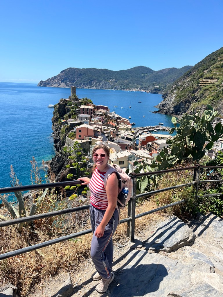 Welcome to my favorite stop on the grand Italian adventure! Cinque Terre pronounced “Chink-kweh Tehr-re” is a national park located on the beautiful Italian Riviera. While today it is very touristy, it is still not on everyone’s radar. If you haven’t heard of it, the best way to describe it is if you have seen the Disney movie Luca. That is the Italian Riviera! It is mostly made up of small, colorful fishing villages making it one of the most picturesque places in Italy. This is a place in Italy I definitely felt most drawn to. When finalizing my Italy itinerary, I had to take out some places, but this was one I was not going to budge on, even if it did make sense to take out. That really is saying a lot too because I ended up keeping it over Florence.