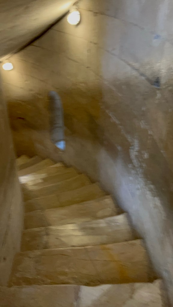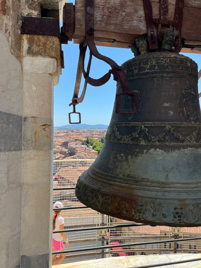 I got in line about 15 minutes before my time slot. At least I thought it was the line, but there was a family behind me that was definitely creepying up on my spot. Did they know I was in line too? Well they ended up getting a head of me because a worker said something that I didn’t quite hear and suddenly I was like 4 more spot behind where I was before because he was directing the next group forward. And even in this line I definitely go cut in front of at least once, because soon I was the end of the line. It for sure happened when these girls from behind me went, “Excuse me.” They were from somewhere else in Europe, but I couldn’t tell where. They went to the spot right in front of me as I was waiting for my chance to go in and I was finally near the front. Well when the man joined them they looked behind at me and showed me there ticket and were like “1:30?” Yes I was in line for the 1:30, so I showed them my ticket and then they went behind me. Like how did I end up at the end of the line when I was 15 minutes early! I guess it isn’t a big deal, but I just felt like nobody was aware of me because I was on my own. They all were just caught in their own groups. I wish I could say this was the end of my complaints about the tourists, but it was not. I was getting a bit fed up in how disrespectful some of the tourist were. One of these same girls came up behind me as I was taking a picture out one of the windows going up the tower. She said excuse me and basically pushed me to the side instead of waiting patiently. Then I got to the top and the view was amazing. Honestly the entire experience going up was really cool. You could feel the slant when walking up the stairs and then the view at the top of the surrounding landscape of Tuscany was so beautiful.