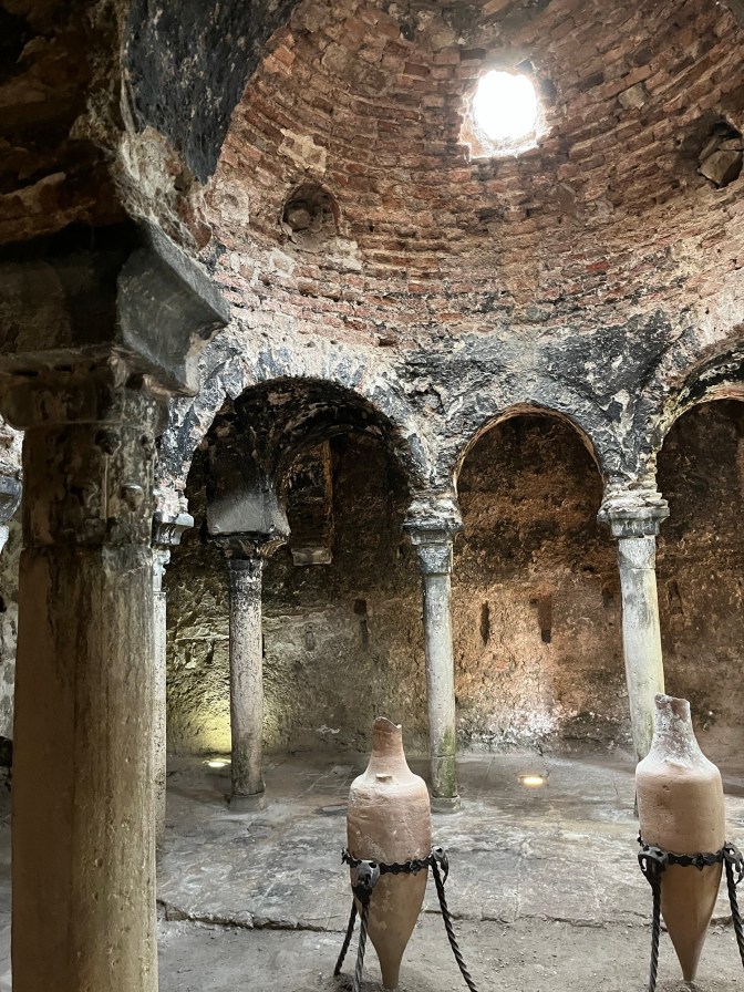 This is my favorite spot in all of Palma. I am not sure if it was the time of year I visited, but there was hardly anyone here. Maybe we can call it my hidden gem. The Arab baths are located a bit off the usual route of sites in Palma. Palma used to be an Arab city called Medina Mayurqa before it became Palma. Some of its building were changed by the Spanish to be more European, like how the mosque became a cathedral and the citadel became the palace. These are the remains of the baths from this time period which was somewhere between the 10th and 12th century. They were kept and built around to form a garden. This is the way they are today. Its a bit hidden in the streets, so finding this beautiful garden is like finding an oasis. There is a lot of information in the old baths to teach you about the Arab part of Mallorca. Once you exit you get all the time in the world to enjoy the gardens that I would say are the most peaceful place on earth. You absolutely cannot come to Palma without visiting the baths.