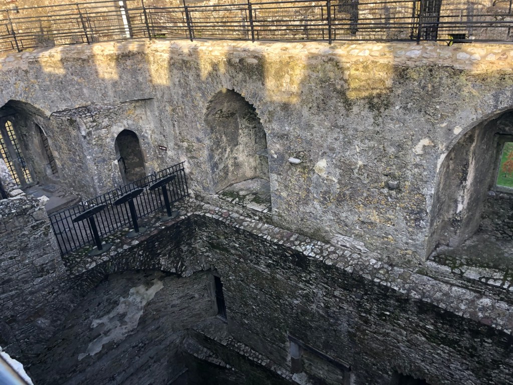 At the top of the castle we reached the blarney stone. I was confused because there was nobody up there. This is where we get to kiss the Blarney Stone right? Why was there no one else. I thought I’d be waiting in line for this big tourist thing. Nope. We walked around and then approached someone who looked like he worked there and he guided us in kissing the stone. I didn’t know how intense it actually was. You are basically being held over the side of the castle upside down to kiss this stone. The workers holds you and help push you towards the stone. I was so freaked out. I am not sure how good I actually got is so I might only have half the power of the gift of the gab. Honoria did much better, but she is also like a foot taller than me. It was fun. We laughed for a bit after that about being man handled a little.