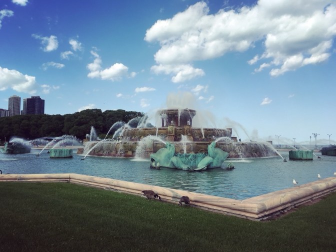 Buckingham Fountain may not be on everyone’s list for Chicago, but it is on mine. It is so beautiful and fun if you visit at the right time! If the Chicago skyline in the background isn’t enough to convince you to visit then let me tell you more about what makes the fountain unique. You can get to it fairly easily from both the Institute of Art and Millenium park as it is located in that larger park area. It is one of the largest fountains in the world. There is a but though, as it is Chicago and gets cold in the winter, so the fountain only runs in the warmer months of late spring to early fall. If you are visiting Chicago in the wintertime, you won’t be able to see it in its full beauty. Still, it is a very unique structure. Its built in a Beaux-Arts style and made up of bronze which is why the statues appear to be a tinted green. Once an hour the fountain has a special water show and in the evenings this includes a light show, so I would highly recommend visiting when it becomes dark. It will shut down about 11 pm, so don’t visit too late!