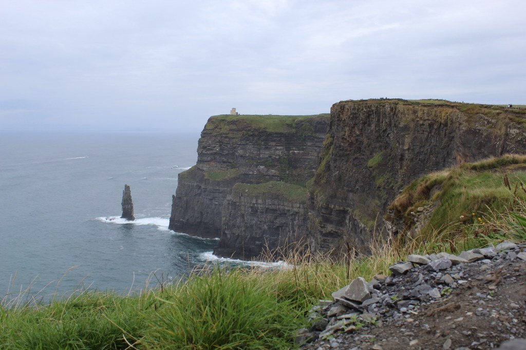 We ended up losing about 30 minutes at the Cliffs of Moher because of leaving the cave late and due to the traffic. Yep the traffic. The curvy country roads in western Ireland are very popular for bikers and it is nearly impossible to go around them on such narrow roads, so our drive from the cave to the cliffs was slow! We were supposed to have 90 minutes at the cliffs, so we still got an hour. I don’t feel like we really were that rushed or missed out on anything though. We had enough time to check out the visitor center, get our pictures with the breathtaking view, and walk the path along the cliffs for a bit. It was really windy and cold so I feel like we couldn’t have handled very much more time out there. At least it didn’t rain, but I was really hoping for it to be sunny for some great pictures. Nevertheless it still was amazing. I think some part of me was hoping for more than it was. I thought it was going to be overwhelming, but it wasn’t. I did feel this way when visiting the cliffs on Inis Mor, which is why I tell people that you have to go there. I didn’t dislike the Cliffs of Moher! I just felt that it gets to be the natural symbol of Ireland, but there are so many more amazing cliffs, hills, and landscapes on the island that are just as if not more beautiful.