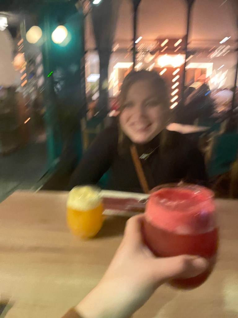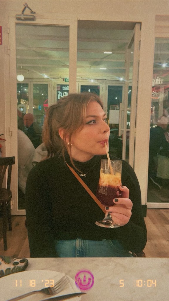 After some time hanging out and chatting we got ready for our night out (I told you it was a long day). We were trying to find somewhere for tapas but it was starting to get to be a bit too late for tapas. We ended up getting drinks at Filemón. Here I got the most pretty and best tasting cocktail I have ever had. It was a kind of tinto de verano, which is similar to sangria, but is fizzier because of the soda in it. I loved that the places where I ordered tinto de verano in Madrid all served it with foam on the top which makes it feel so much fancier. Now it was after 10 pm which was still too early to go out to the bars and clubs so we stopped at another place in Pozuelo. Next went to Ochenta Grados for more tinto de verano. It was here that we actually got food because we weren’t able to get tapas at Filemón. I finally got to try patatas bravas and they were delicious. I love the sauce on them. After trying a few different foods we finally headed back into Madrid for our night out.