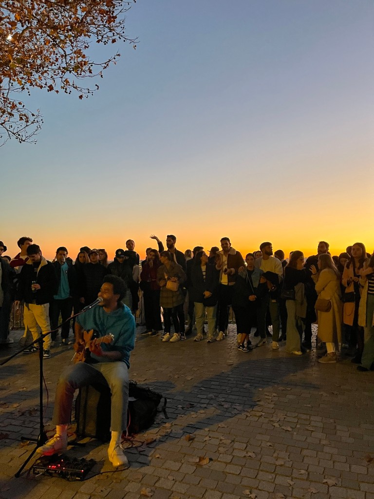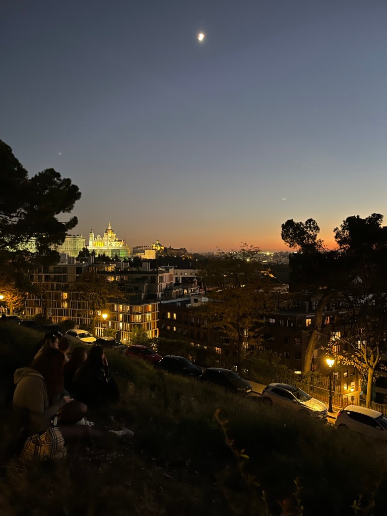 It was here that we danced with strangers as the most beautiful sunset ever fell over Madrid. My instagram caption was “thinking about how I will never again be young dancing at sunset in a park in Madrid with a bunch of strangers”. It seriously was the most magical moment of my life. We came to the edge of the park where a man was singing and playing his guitar in the middle of a group of people. I still follow him on Instagram, Situasound. He really had a way with people. He played music from all of the world, but somehow it connected everyone in that crowd. Before I knew it we all began to dance in a circle spinning arm and arm with friends and strangers. It was amazing. Eventually we walked away to catch a better look at the sunset as it grew darker and darker in Madrid. From the hill you could not only see the lights of peoples homes, but also the palace and cathedral glowed above them.