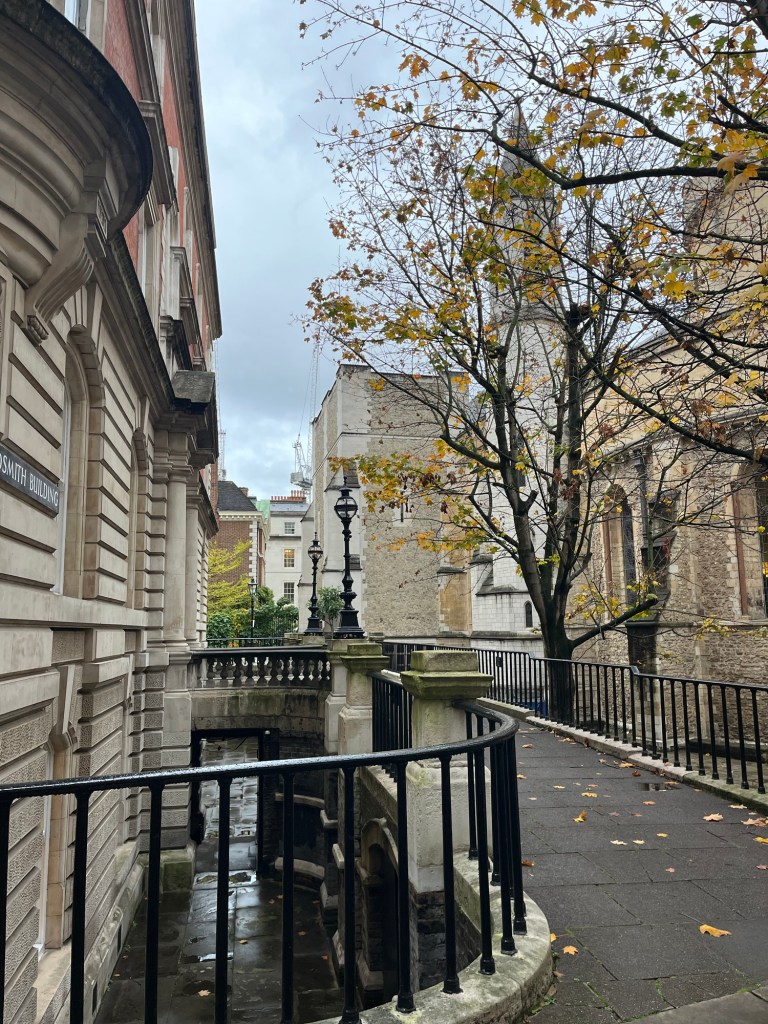 I took the metro from Tower of London to Temple for my first Rick Steves walks. If you are unfamiliar with Rick Steves audio guides, he has his own app, Rick Steves Audio Europe and it is one of my favorite resources for traveling around Europe. For many major European cities he has audio tours on this app that take you around the major sites explaining their history and significance. He also has them for some museums and churches in these places as well. For London I started with “Historic London: The City”. This walking tour covered the neighborhood surrounding St. Paul’s Cathedral that would be considered the old city. Here there are many historical buildings that date back to the 1600s, so walking around, you feel transported back in time. It is also the financial district of London, it is referred to by many as “The City.” This part of London is located east of Westminster and Camden and west of Tower Hamlets which is where you will find all the towering skyscrapers and where my hostel was located.