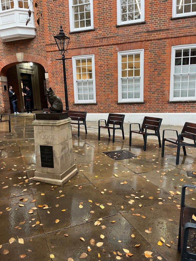 Here I discovered who the writer Samuel Johnson is from seeing the Dr. Johnson house. You may have seen on my UK page that I use his famous quote: “When a man is tire of London he is tired of life, for there is in London all that life can afford.” You can visit the inside of the hosue as it is a museum, but again I was trying to stick to free activities today. I did get to see the statue of Hodge the cat at the other end of the square, so I got all I needed.