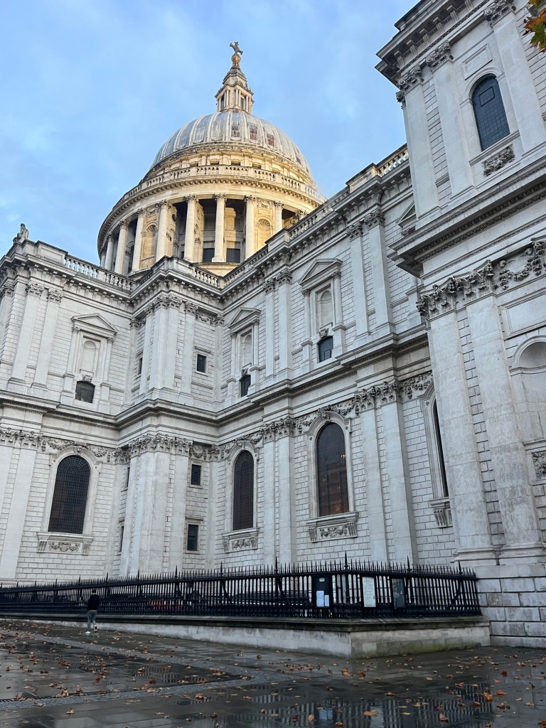 The next stop on my walking tour was St. Paul’s Cathedral. It was awkward timing because by the time I got to the cathedral I had about 45 minutes until the evening song I wanted to attend. It felt like not enough time to finish the last few stops of the tour and then come back, so in the end I never did get to see the other stops and monuments on the way to London Bridge. To me that felt ok though because they weren’t places up high on my list and I would walk London Bridge the next day anyway.