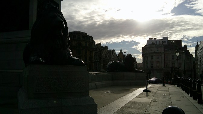 I finished up the walking tour by walking to Trafalgar Square, the big square in front of the National Gallery. I will admit it is a bit of a nuisance trying to get from White Hall to the actual square as there are so many roads to cross. In the middle of the square lies a column topped with Admiral Horatio Nelson who defended Britain against Napoleon. What stands out most is the lions, which are a symbol of England, that sit at the base of the column.