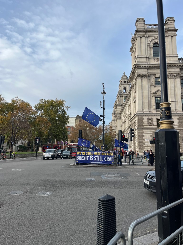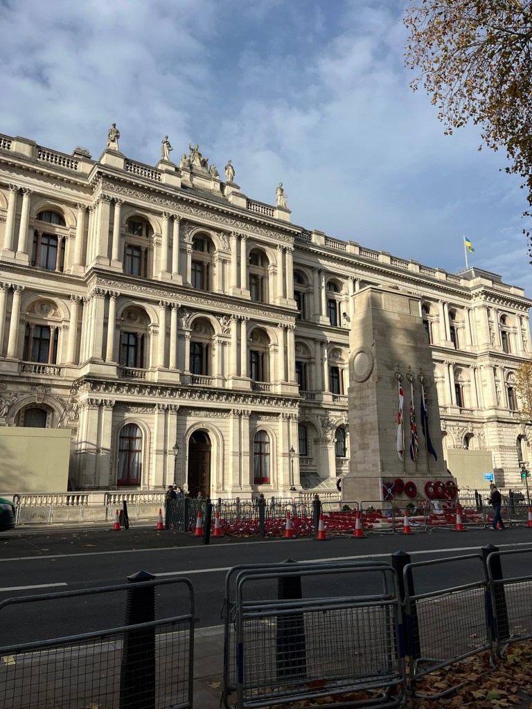 There are few more significant places in this square like the Winston Churchill statue and the Church of St. Margaret’s, but again, I couldn’t really tell where they were, so I continued on with the tour to the right down Whitehall or Parliament Street. This is where all the most important political buildings sit. For this reason you may also see groups protesting issues. This day it just so happened to be they were protesting Brexit and wanting to rejoin the European Union. A little ways down the street after taking in the towering building I came across the cenotaph, which I would completely have looked over if I was walking on my own, but because Rick Steves was guiding me I stopped to learn about it. It is a memorial to all those who lost their lives in both of the world wars. You’ll see many people stopping here to honor those who died and it is actually quite powerful.