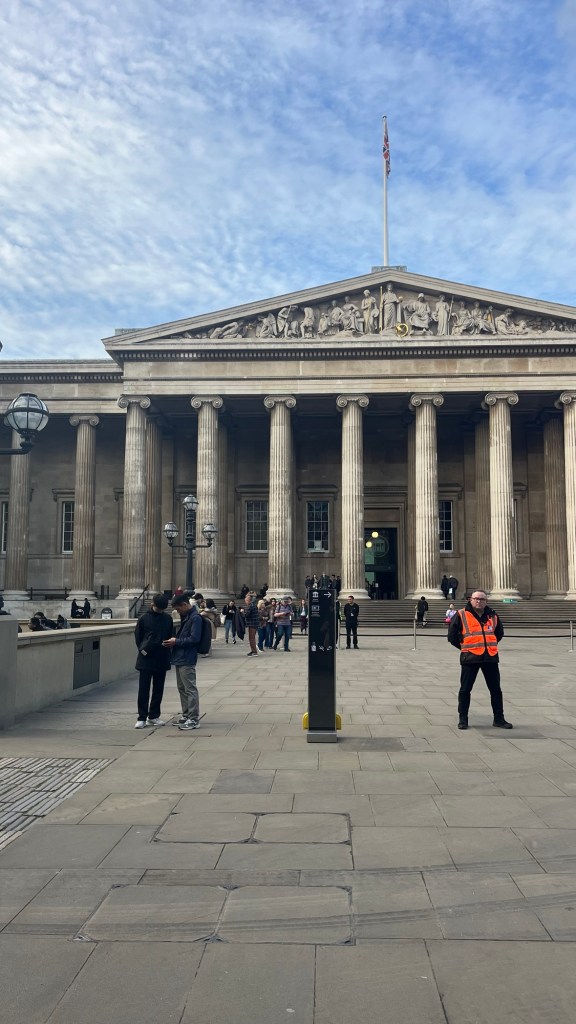 Now I was really full, but I felt warm and fuzzy inside from the Cardamom. I had just a bit further to go until I would arrive at the British Museum and wow were my feet killing me. It was probably not very smart of me to wear my Doc Martens, but I had been wearing my sambas the last few days and have discovered they don’t actually have a lot of support. I thought the Docs had a thicker sole so they might be more comfortable for standing around at museums, but I honestly think in the end they were worse. A lesson was learned about shoe choices on this trip. I must be getting old(er) because a few years ago I never had so many problems with my shoe choices.