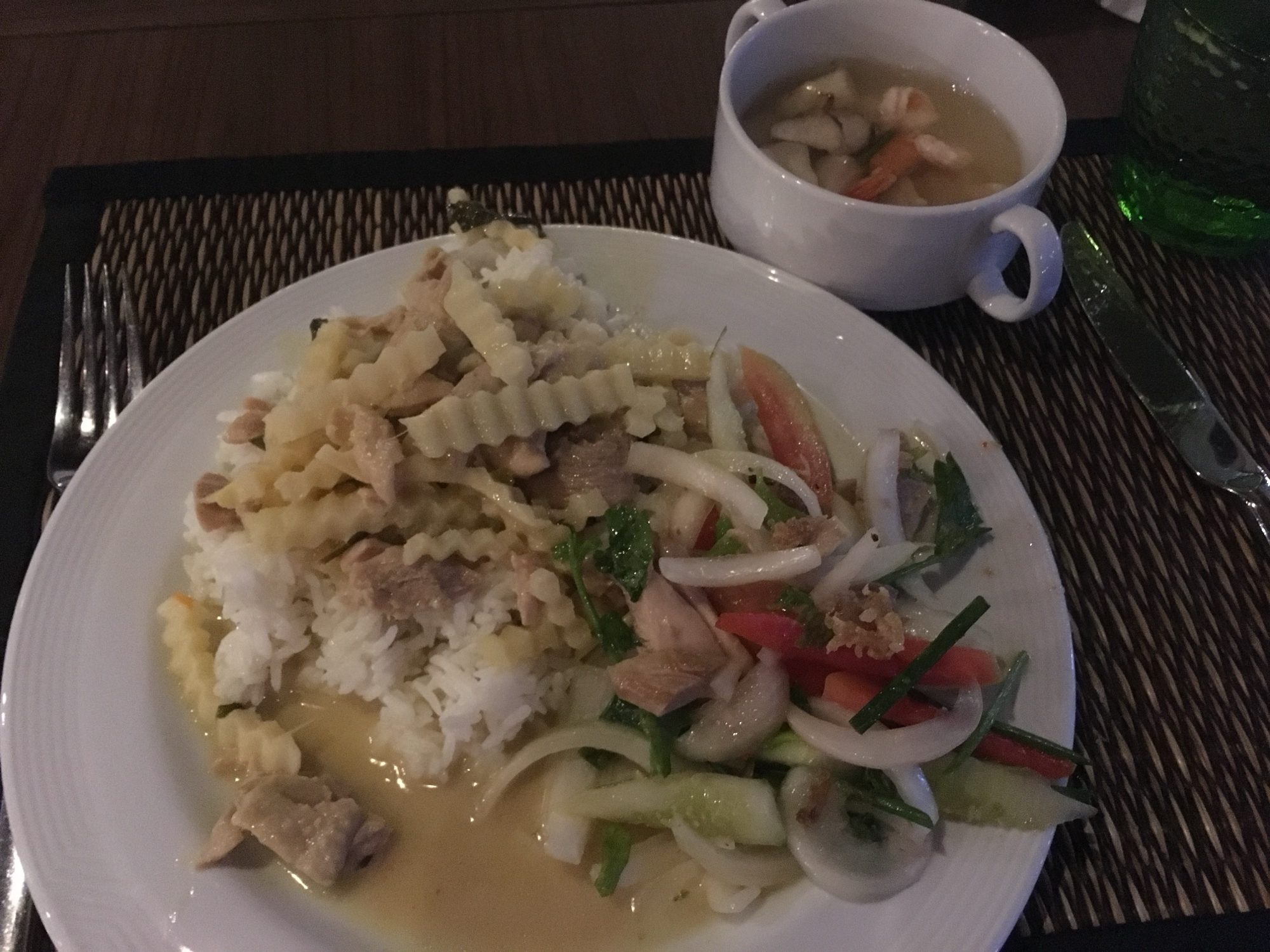 Then it was dinner time and this was the scene I was trying to set for you at the beginning of this post! Not only was it an amazing setting and atmosphere but it was the most amazing meal. We were served soup and salad along with green chicken curry. I love curry! Then we of course got more fruit for dessert. After dinner was bed time, because it really was a long day!