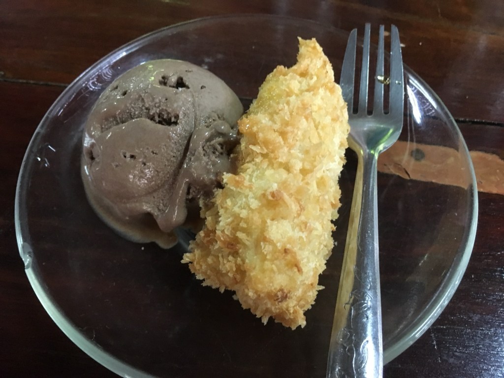 After we headed to lunch where we had the choice between three different kinds of chicken. There was chicken curry, pineapple chicken, and sweet & sour chicken. From the buffet we could also have veggies, rice, and fried banana for dessert. It was wasn’t like any of the other bananas I had on this trip though. It was served with ice cream and was absolutely amazing.
