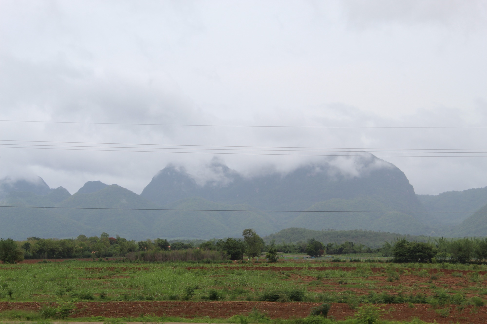 Then we hopped back on the bus for another 2 hours. It was definitely a long day. Luckily our guide provided us with a little snack, some little Thai bananas he picked up at the market. I ate so well on this trip! We got to Kanchanaburi just in time for lunch. We ended up at a super cute outdoor cafe. They fed us soup (I know, in this heat!), veggies, fish, chicken, Thai pork and rice, eggs and noodles, and some more fruit for dessert. It was family style so we could take what we wanted and however much we wanted. Some foods definitely went faster than others. I wasn’t picky though.