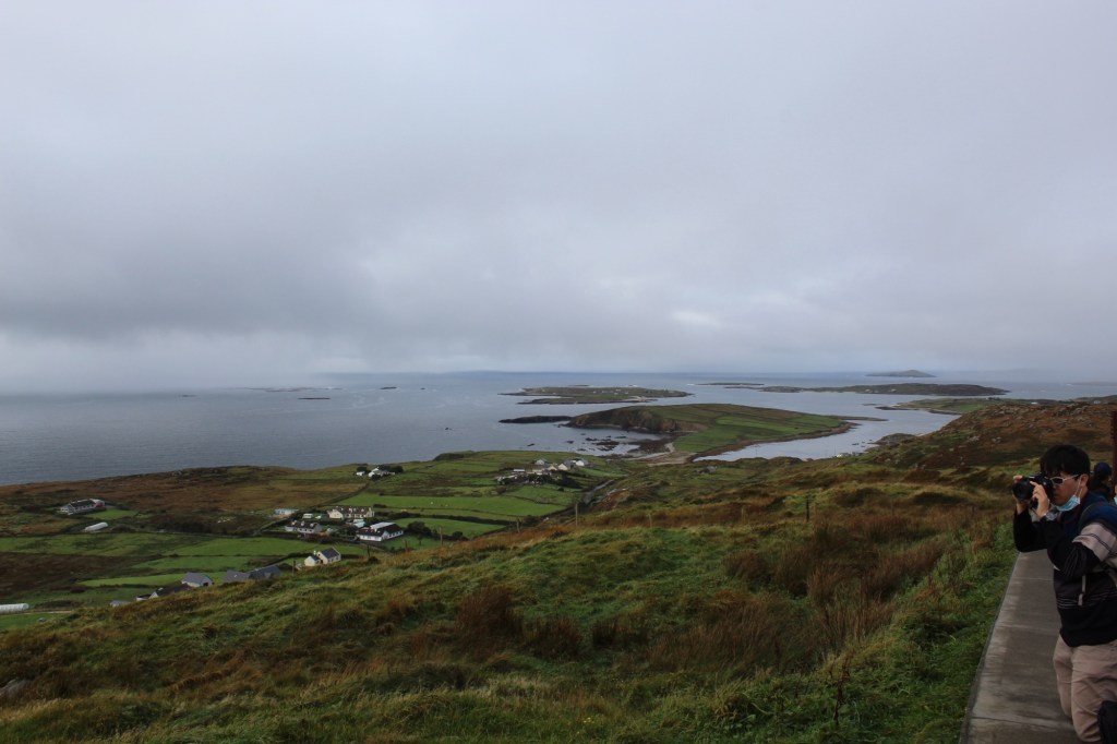 After a bit we stopped for a bathroom stop in Maam Cross that just so happened to also be a gift shop with a tower you could go up to see a bit more of the scenery. I didn’t buy anything but I did really enjoy the view. After this stop we headed back on the bus until the next photo opp in Clifden at Sky Road View Point. This was one of the most scenic stops on the tour. It was a different kind of view than what I had seen thus far in Ireland. I had stuck to the typical rocky terrain and cliffs of Galway and Clare, but now I was nearing what I had imagine northwestern Ireland would look like. It was green hills with inlets in the water. All I wanted to do was go down there and jump in (although it was October so that would probably be a bad idea).