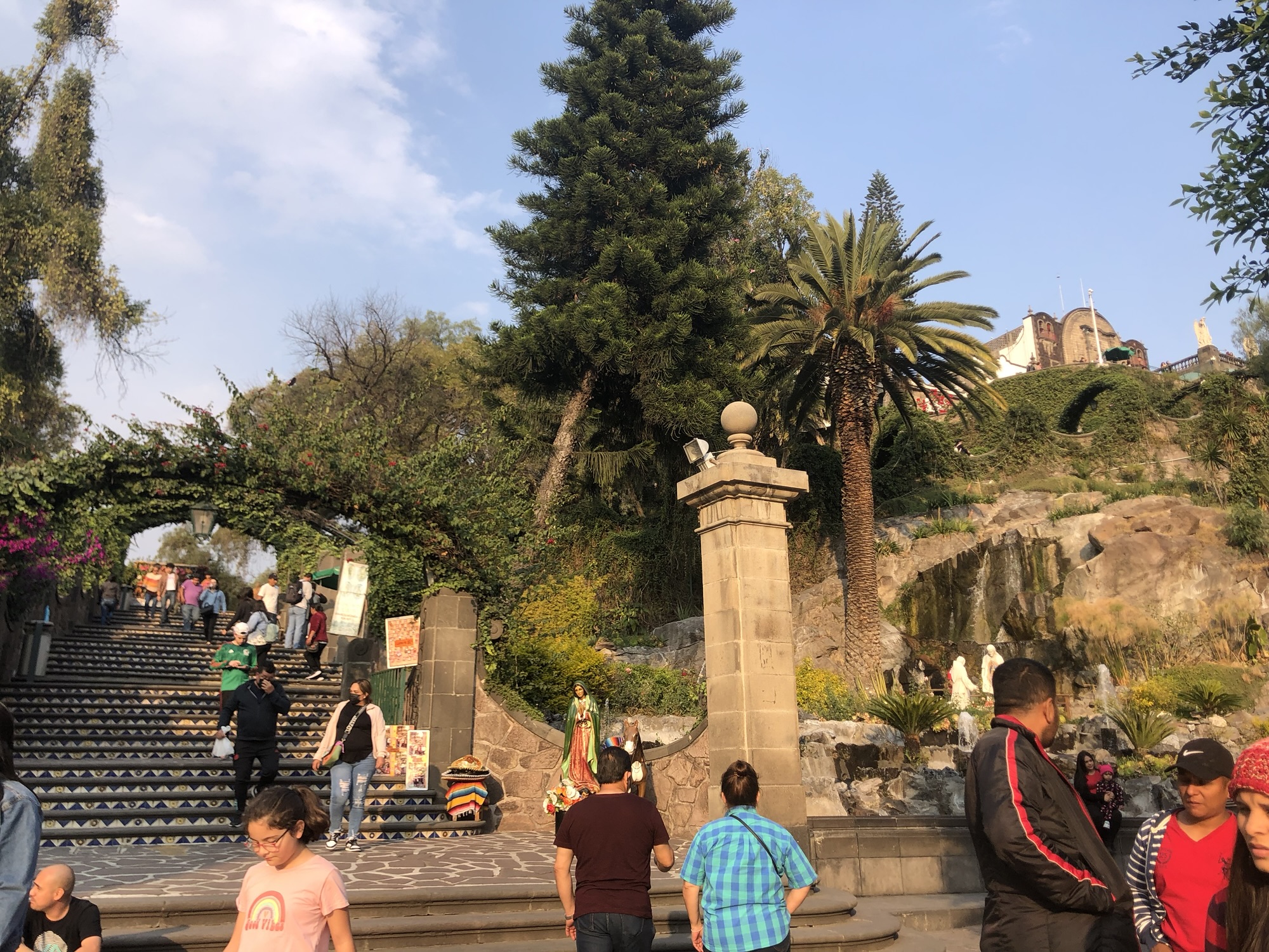 From here was headed up the steps to the top of Tepeyac Hill where the apparition of Our Lady of Guadalupe took place. This is where, in 1531, Mary appeared to Juan Diego and asked him to build this shrine that would bring many of the indigenous people to the Catholic faith. I think although this wasn’t the location of the Tilma, it was my favorite spot at the shrine. First there was an amazing view of the cathedrals and the rest of the city from up on this hill. Then there was the little chapel there. The Little Hill Chapel was built on the exact spot Mary appeared to Juan Diego. It is not quite as extravagant as the basilicas here, but the simplicity held a lot of power. I felt much more connected to the apparition here than I did at the New Basilica. We spent some time praying here in the chapel before we had our free time to walk around the rest of the site and work on our journaling.