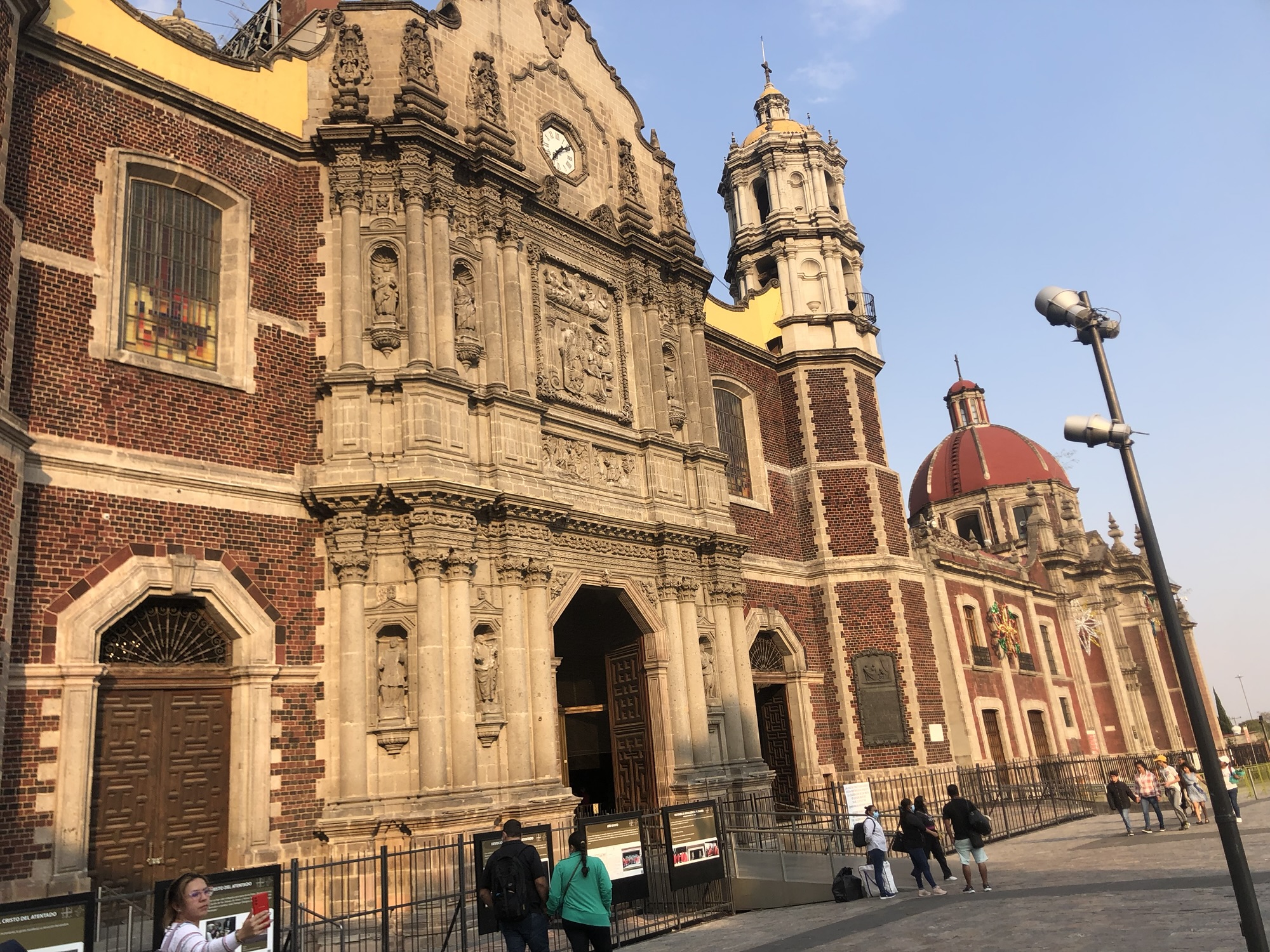 We had just a couple things lined up for this day, but they were bigs things. First we went to the pyramids of Teotihuacán before then going to the shrine of Our Lady of Guadalupe. I should have known the second I stepped off that bus at the pyramids that I should have put on sunblock, but I didn’t. I have this problem where I think if it isn’t super hot I don’t need sunblock, but that isn’t always the case. Even though the temperature could not have been any more than 60 degrees, the sun was warm and strong. The high altitude of Mexico City makes it a bit colder than the rest of the country, but this also means it is closer to the sun. I got a little sunburned as I slowly cooked while we walked around the pyramids for a couple hours without my sun protection. I wish I could say I learned my lesson, but I never do. People always feel bad for me when I am sunburned, but it is my own fault, so the sympathy feels out of place. I got what was coming.