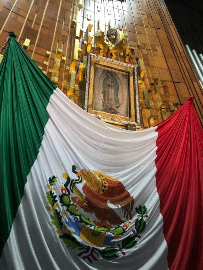 I am not sure what I had expected from the shrine but it was not this if I were to be completely honest. First you have the basilica which looks more like a modern mega church than the pretty only churches I was expecting from Mexico. That is because there is the old and the new basilica on this site. Of course we attended mass at the new basilica which houses the the Tilma in which Our Lady of Guadalupe appeared. We attended the Spanish mass here which was a completely different vibe from the mass we had the night before in the basement of the hotel. I couldn’t decide if I liked it or not. I don’t care for modern church buildings. I feel more connected to the rituals and prayers in the older churches that are full of art and other beautiful things. I suppose here had one of the most beautiful things of all though, the Tilma with the image of Our Lady of Guadalupe. Although it is displayed behind the altar, it is a bit difficult to see from the pews.